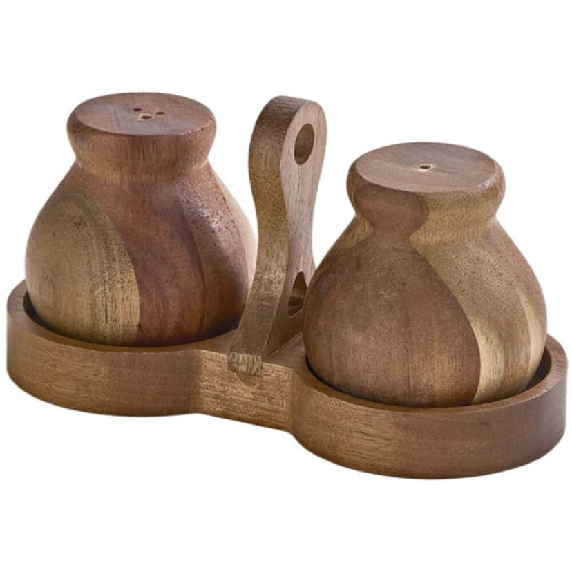 Το Σετ Αλατοπίπερο Σε Βάση Akasya (3Τμχ) 337GLZ1177 εισάγει μια φυσική και ζεστή νότα στο τραπέζι σας. Η χρήση της φυσικής ακακίας προσφέρει μοναδικά νερά και εξαιρετική ανθεκτικότητα στην καθημερινή χρήση, διασφαλίζοντας ότι το αλατοπίπερο παραμένει προστατευμένο σε μια στιβαρή και ποιοτική κατασκευή. Ο εργονομικός σχεδιασμός τους επιτρέπει άνετο χειρισμό και σταθερή τοποθέτηση στη βάση, ενώ η οργανική αισθητική του ξύλου αναβαθμίζει την παρουσίαση των γευμάτων σας, δημιουργώντας μια αίσθηση φιλοξενίας και διακριτικής πολυτέλειας που ταιριάζει σε κάθε στυλ διακόσμησης.