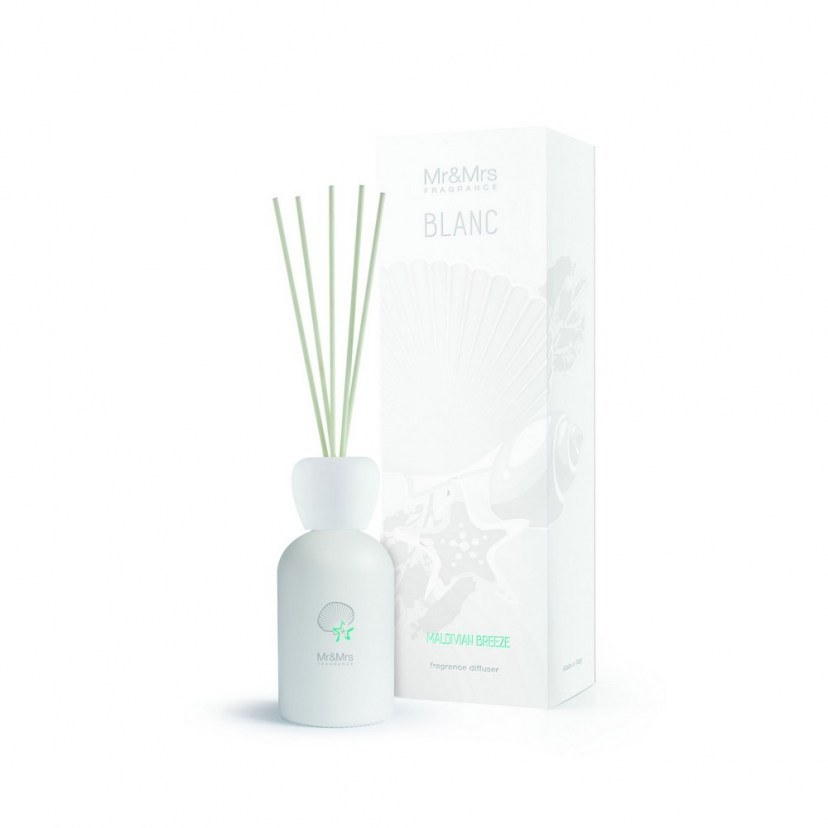 Το Αρωματικό Χώρου Με Στικς Blanc Diffuser Maldivian Breeze είναι δροσερό και αναζωογονητικό, εμπνευσμένο από την αύρα των εξωτικών νησιών των Μαλδίβων. Συνδυάζει τις φρέσκες νότες θαλάσσιων αερίων με απαλές νότες ανθισμένων λουλουδιών πορτοκαλιάς και βιολέτας και με σανταλόξυλο και κεχριμπάρι, δημιουργώντας ένα αρωματικό μείγμα που θα σας μεταφέρει σε μια εξωτική παραλία.