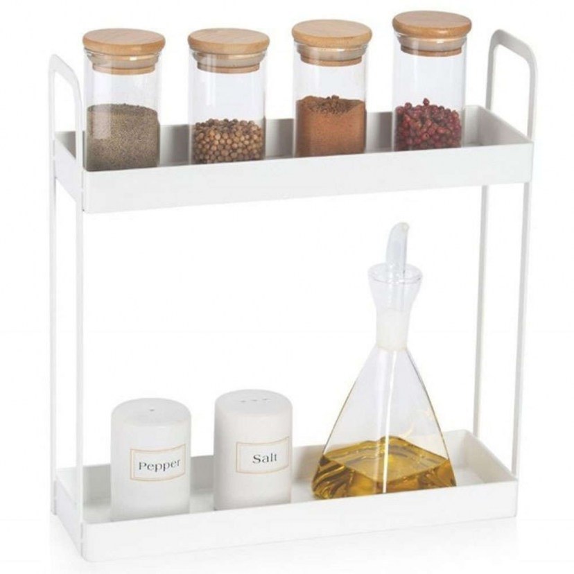 Η συγκεκριμένη Βάση Οργάνωσης Κουζίνας ξεχωρίζει για την πρακτικότητα και τη φινέτσα της. Κατασκευάζεται από μέταλλο και διαθέτει minimal design. Αποτελείται από δύο ράφια για μεγαλύτερη χωρητικότητα και εξοικονόμηση χώρου. Είναι ιδανική για περίπου 8 με 10 βάζα. Τα βάζα που φαίνονται στις φωτογραφίες δεν περιλαμβάνονται. Καθαρίστε τη με ένα νωπό πανί και μη χρησιμοποιείτε λειαντικά προϊόντα.