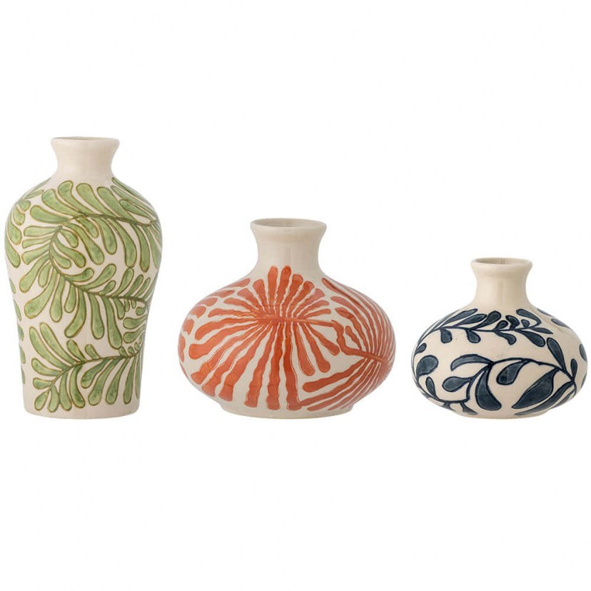 Το Σετ Βάζα Fauni (3Τμχ) 82061394 προσφέρουν μια γλυκιά και χρωματιστή διακοσμητική νότα στο χώρο σας. Κάθε μικρό βάζο είναι χειροποίητα ζωγραφισμένο με φυτικά μοτίβα σε τρεις υπέροχες αποχρώσεις και κάθε πινελιά φέρνει μια μοναδική προσωπική πινελιά, δημιουργώντας μικρές διαφορές στο σχέδιο που κάνουν κάθε βάζο ξεχωριστό. Το σετ αποτελείται από τρία βάζα διαφορετικών διαστάσεων.