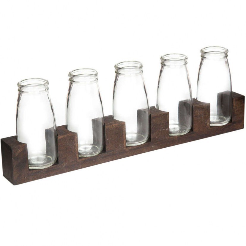 Το Σετ Βάζα Σε Βάση 950FRB1109 αποτελεί μια πρωτότυπη ρουστίκ διακοσμητική πινελιά που θα αναβαθμίσει τον χώρο σας με την αυθεντική του αισθητική. Αυτή η ξεχωριστή σύνθεση διαθέτει μια κομψή ξύλινη βάση, επάνω στην οποία στηρίζονται πέντε γυάλινα βάζα, προσφέροντας άφθονες επιλογές για να αναδείξετε τα αγαπημένα σας τεχνητά ή φυσικά λουλούδια. Ιδανικό για να φέρει μια νότα φυσικής ομορφιάς σε κάθε δωμάτιο, αυτό το διακοσμητικό αντικείμενο συνδυάζει τη ζεστασιά του ξύλου με τη διαφάνεια του γυαλιού, δημιουργώντας ένα αρμονικό και κομψό αποτέλεσμα.