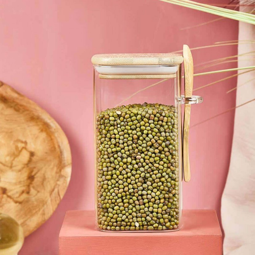 Το Βάζο Αποθήκευσης Με Καπάκι & Κουταλάκι Bambu 337GLZ1141 εξασφαλίζει την απόλυτη τάξη στα μπαχαρικά ή τα ροφήματά σας, καθώς το διαυγές γυαλί του αναδεικνύει την υφή του περιεχομένου και προσδίδει μια αίσθηση καθαρότητας στον πάγκο σας. Το καπάκι από bambu προσφέρει μια οικολογική και ζεστή αισθητική ενώ σφραγίζει με ασφάλεια, την ίδια στιγμή που το ενσωματωμένο κουταλάκι καθιστά τη χρήση των υλικών σας πιο γρήγορη και εύκολη από ποτέ. Ο κομψός και λιτός σχεδιασμός του το καθιστά ένα διακοσμητικό και ταυτόχρονα χρηστικό εργαλείο, ιδανικό για όσους επιθυμούν να συνδυάσουν τη λειτουργικότητα με την υψηλή αισθητική των φυσικών υλικών.