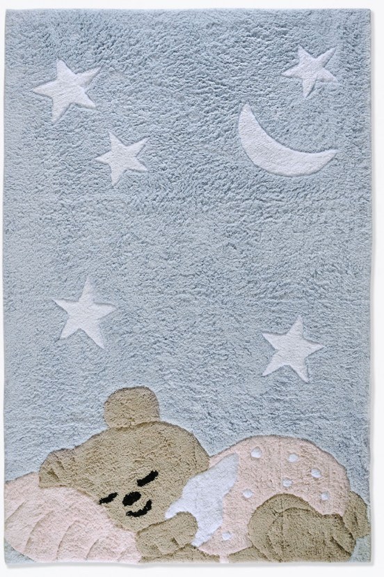 Φέρετε τον κόσμο των παιχνιδιών στο δωμάτιο σας με το Χαλί Bear, ένα παιχνιδιάρικο κομμάτι που φέρνει χαμόγελα και ρομαντική ατμόσφαιρα. Αυτό το χαλί διαθέτει ένα χαριτωμένο αρκουδάκι που κοιμάται γλυκά, παρέα με τα αστεράκια και το φεγγαράκι, δημιουργώντας ένα μαγικό σκηνικό στο πάτωμα του δωματίου. Κατασκευασμένο από υψηλής ποιότητας βαμβάκι, το χαλί είναι όχι μόνο γλυκό στην όψη, αλλά και απαλό στην αφή. Η ανθεκτική κατασκευή του το καθιστά ιδανικό για το παιδικό δωμάτιο, αντέχοντας στο πιθανό έντονο παιχνίδι. Το χαλί Bear δεν είναι απλά ένα αξεσουάρ διακόσμησης, αλλά και ένα φιλικό περιβάλλον για το παιδί σας.
