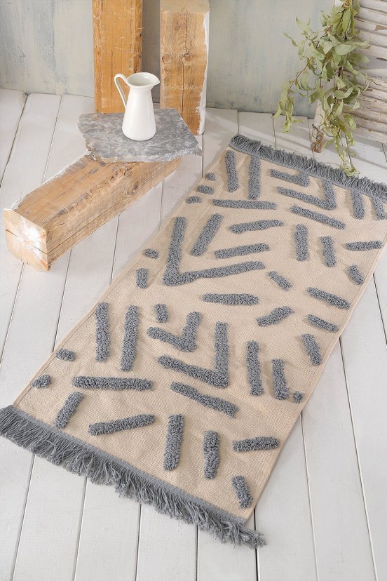 ToΧαλί Mojave είναι ένα ιδιαίτερο χαλάκι, το οποίο μαγνητίζει τα βλέμματα με το κομψό και φινετσάτο σχέδιο. Είναι κατασκευασμένο από βαμβάκι, με μοναδική υφή και πλούσια κρόσσια στο τελείωμα! Οι shaggy λεπτομέρειες του εξασφαλίζουν μία άκρως μοντέρνα εμφάνιση! Στρώστε το στο υπνοδωμάτιο, στην κουζίνα, στην αγαπημένη γωνιά του σαλονιού σας ή οπού αλλού θέλετε να προσδώσετε cozy ύφος.