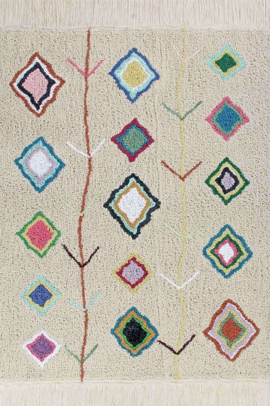 Με εξωτική αύρα, έθνικ μοτίβα και καλλίγραμμα κρόσσια, το Χαλί Morocco Kaarolθα ανανεώσει τον χώρο σας με τον καλύτερο τρόπο. Το πανέμορφο χαλί είναι χειροποίητο, κατασκευασμένο από βαμβάκι και βαμμένο με φυσικές βαφές, που το καθιστούν εξαιρετικά απαλό, υγιεινό, εύκαμπτο και ελαφρύ. Πληροί όλες τις προδιαγραφές ποιότητας και ασφάλειας ακόμα και για παιδιά και έχει ISO 9001, ISO 14001, ISO 18001 και πιστοποιητικά AITEX. Είναι ιδανικό για παιδικό δωμάτιο, για φοιτητικό σπίτι, για το σαλόνι, ακόμα και για τον κήπο. Μπορείτε να το στρώσετε όπου χρειάζεστε μία όμορφη πινελιά χρώματος. Πλένεται σε οικιακό πλυντήριο ρούχων 8 κιλών.