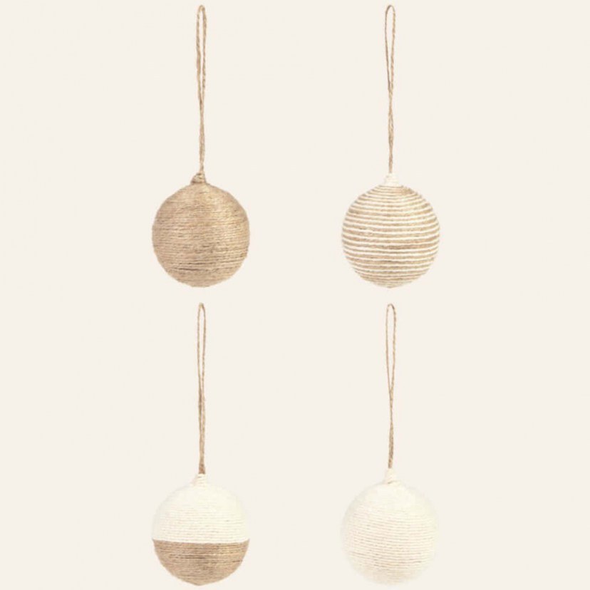 Προσθέστε μια φυσική και κομψή νότα στο χριστουγεννιάτικο δέντρο σας με το Σετ Χριστουγεννιάτικες Μπάλες Ural (4Τμχ) CAURALASS7NAT! Κατασκευασμένο στο χέρι από 50% βαμβάκι και 50% γιούτα, προσφέρει μοναδικό σχεδιασμό και ζεστή, φυσική ατμόσφαιρα, όντας ιδανικό για όσους επιθυμούν μια βιώσιμη και στιλάτη διακόσμηση. Κάθε κομμάτι είναι ξεχωριστό, με μικρές διαφοροποιήσεις στο χρώμα και την πλέξη που τονίζουν τον χειροποίητο χαρακτήρα.