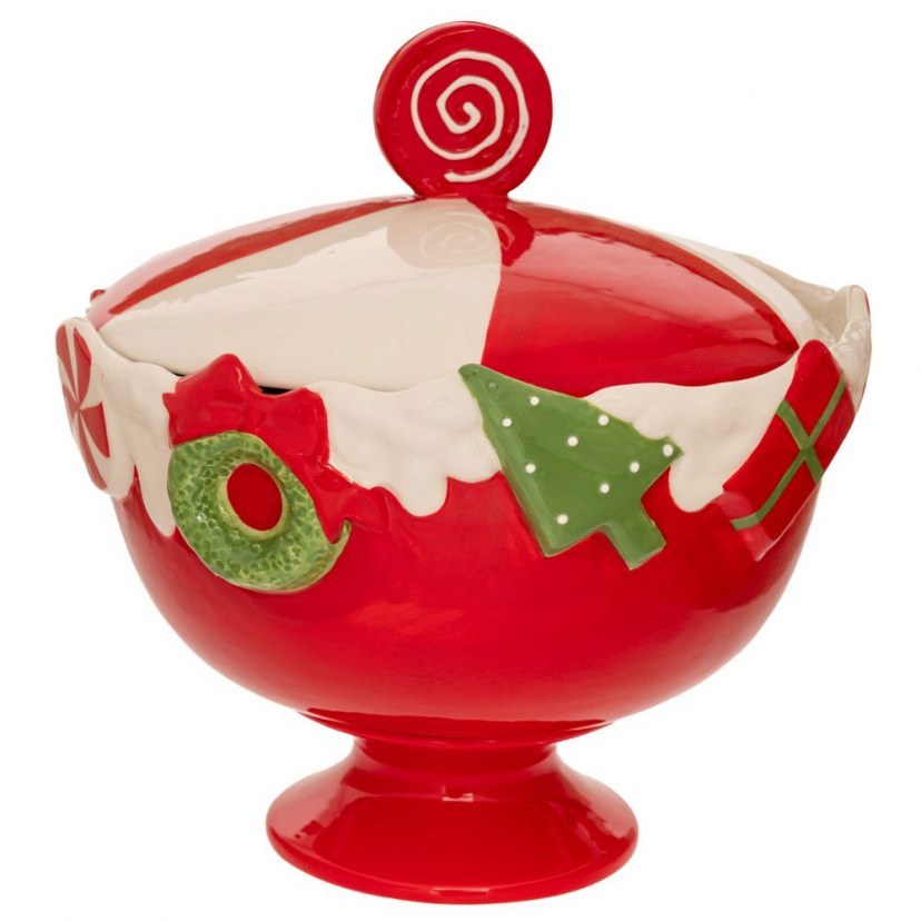 Η Χριστουγεννιάτικη Μπισκοτιέρα Καραμέλα 90932 είναι ένα χριστουγεννιάτικο διακοσμητικό που συνδυάζει λειτουργικότητα και γιορτινή αισθητική, ιδανικό για τοποθετήσετε στο τραπέζι, το ράφι ή για δώρο σε κάποιο αγαπημένο πρόσωπο. Πρόκειται για μία κεραμική μπισκοτιέρα σε σχήμα μπωλ.