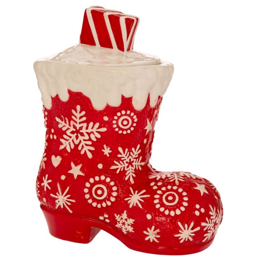 Προσθέστε γιορτινή ατμόσφαιρα και γλυκιά διάθεση στον χώρο σας με τη Χριστουγεννιάτικη Μπισκοτιέρα Μπότα 90941. Πρόκειται για μία κεραμική μπισκοτιέρα σε σχήμα μπότας, που είναι ιδανική για να αποθηκεύσετε μπισκότα ή μικρά γλυκίσματα, προσθέτοντας χαριτωμένο και εορταστικό στυλ στο σπίτι σας.