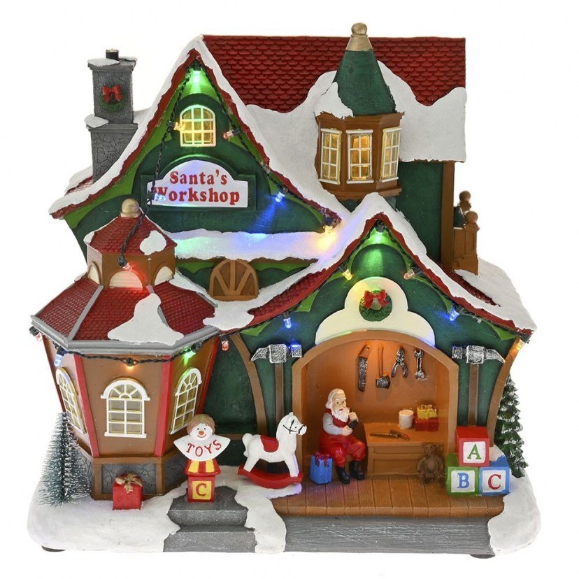 Η Χριστουγεννιάτικη Παράσταση Εργαστήριο Άι Βασίλη Με Φως & Μουσική 78591 θα κλέψει τις εντυπώσεις των επισκεπτών σας. Αυτό το όμορφο σκηνικό φωτίζεται σε διάφορα σημεία και παίζει 8 χαρούμενα χριστουγεννιάτικα τραγούδια για να σας βάλει στο εορταστικό κλίμα. Με προσεγμένη κατασκευή από πολυρεζίνη και πλαστικό, λειτουργεί με μπαταρίες, που δεν περιλαμβάνονται και διαθέτει κουμπί On/Off για τη μουσική. Ιδανικό για να προσθέσετε ζεστασιά και χριστουγεννιάτικη ατμόσφαιρα στο χώρο σας!