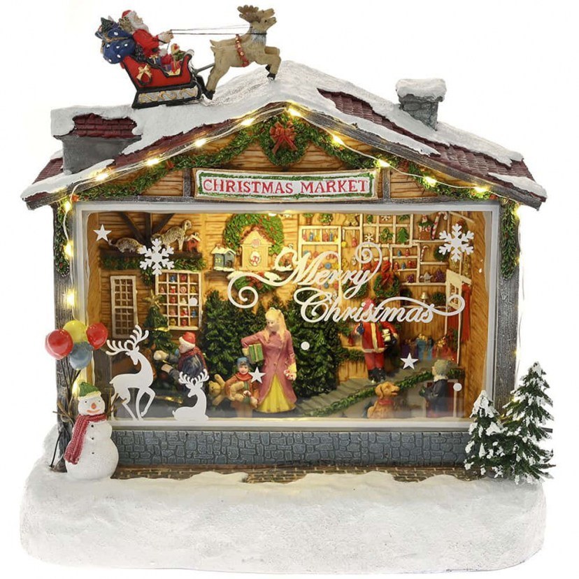 Δημιουργήστε μια ζωντανή και μαγευτική χριστουγεννιάτικη ατμόσφαιρα με τη Φωτιζόμενη Παράσταση Με Κίνηση & Μουσική Christmas Market 78539. Το εντυπωσιακό σκηνικό απεικονίζει ένα φωτιζόμενο μαγαζί με LED φωτάκια σε πολλά σημεία, κινούμενα στοιχεία και μουσική που ενεργοποιείται με κουμπί On/Off. Κατασκευασμένο από πολυρεσίνη και πλαστικό, λειτουργεί με ρεύμα μέσω μετασχηματιστή 4.5V που περιέχεται και ξεχωρίζει για την εκλεπτυσμένη απεικόνιση και την υψηλή ποιότητα κατασκευής.