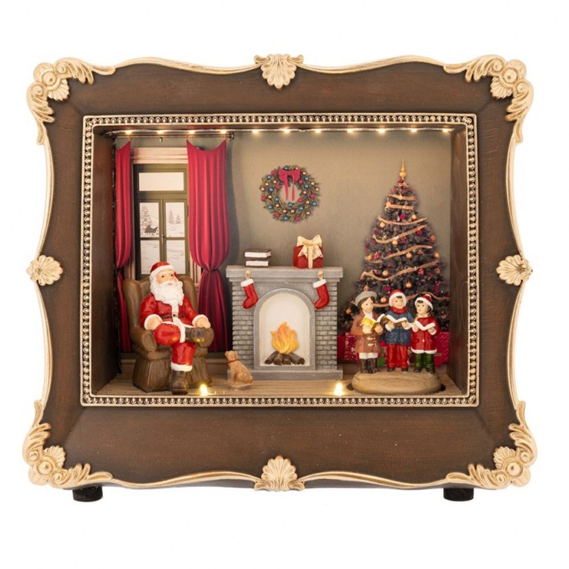 Η αγαπημένη εποχή του χρόνου έφτασε και η διακόσμηση κάθε χώρου θα πρέπει να διαθέτει την απαραίτητη γλύκα και μαγεία που χαρακτηρίζει τα Χριστούγεννα. Η Χριστουγεννιάτικη Παράσταση Κάδρο Δωμάτιο Άι Βασίλη Με Φως & Μουσική 86344 εικονίζει μεταξύ άλλων τον Άι Βασίλη, παιδάκια τζάκι και έλατο. Διαθέτει ενσωματωμένο φωτισμό και παίζει μουσική. Λειτουργεί με μπαταρίες.