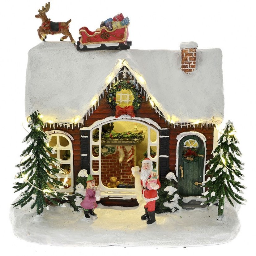 Φέρτε τη μαγεία των Χριστουγέννων στο χώρο σας με τη Χριστουγεννιάτικη Φωτιζόμενη Παράσταση Σπίτι Άι Βασίλη 78541! Με εντυπωσιακές λεπτομέρειες και φωτάκια που λάμπουν, αυτό το σκηνικό με τον Άγιο Βασίλη και το έλκηθρο στην οροφή θα προσδώσει ζεστασιά και γιορτινή ατμόσφαιρα σε κάθε περιβάλλον. Λειτουργεί με μπαταρίες 3ΑΑ και είναι κατασκευασμένο από ανθεκτική πολυρεζίνη και πλαστικό.