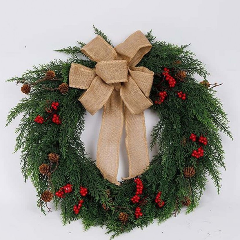 Δώστε μια ζεστή, φυσική νότα στη γιορτινή σας διακόσμηση με το Χριστουγεννιάτικο Στεφάνι Με Φιόγκο 600-47076. Ο φιόγκος από λινάτσα προσθέτει ρουστίκ κομψότητα, ενώ τα γιορτινά berries και τα φυσικά κουκουνάρια δημιουργούν παραδοσιακή γιορτινή ατμόσφαιρα. Ιδανικό για την πόρτα, τον τοίχο ή ακόμα και ως centerpiece σε τραπέζι, αυτό το στεφάνι συνδυάζει φυσικότητα, ζεστασιά και μαγική χριστουγεννιάτικη αισθητική.