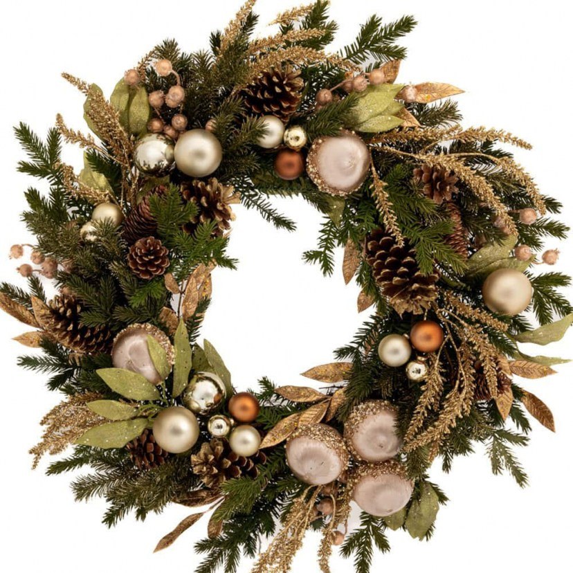 Προσθέστε φυσική ομορφιά και γιορτινή ζεστασιά στον χώρο σας με το Χριστουγεννιάτικο Στεφάνι Με Μπάλες 91153, διακοσμημένο με μπάλες, κουκουνάρια και μούρα. Ο πλούσιος συνδυασμός υλικών δημιουργεί μια παραδοσιακή, εορταστική αισθητική που φέρνει τη μαγεία των Χριστουγέννων σε πόρτες, τραπέζια ή τοίχους.