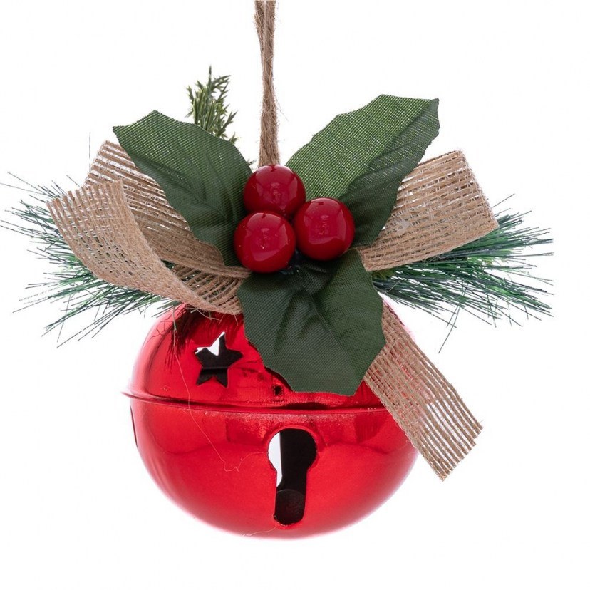 Το Χριστουγεννιάτικο Στολίδι Καμπάνα θα κάνει πιο γλυκιά και διαχρονική τη χριστουγεννιάτικη διακόσμηση του χώρου σας. Μπορεί να κρεμαστεί στο δέντρο ή να στολίσει άλλα σημεία μέσα σε ένα δωμάτιο. Πρόκειται για μία μεταλλική γυαλιστερή καμπάνα με διακοσμητική κορδέλα και γκι.