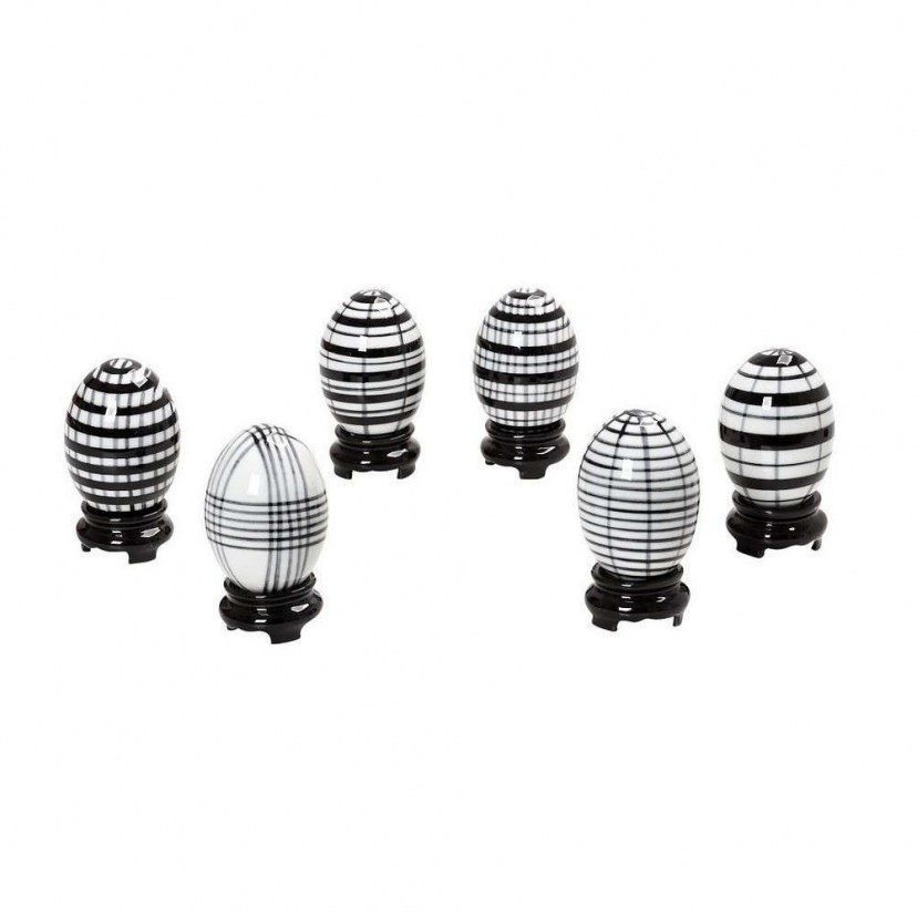 Στο designdrops θα βρείτε μοντέρνα και ιδιαίτερα διακοσμητικά για το σπίτι και για τον επαγγελματικό σας χώρο. Το Σετ Διακοσμητικά Αυγά Assort FEG318K6 είναι ιδανικό για εσάς που θέλετε κάτι πρωτότυπο. Πρόκειται για έξι πορσελάνινα αυγά, τα οποία είναι διακοσμημένα με ασπρόμαυρα ριγέ σχέδια. Μπορείτε να τα συνδυάσετε με τη διακοσμητική βάση και να τα αναδείξετε με τον καλύτερο τρόπο.