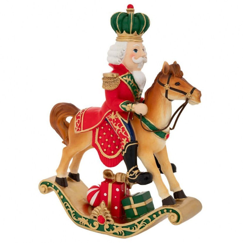 Ο Διακοσμητικός Καρυοθραύστης σε Άλογο 90353 είναι ένα διακοσμητικό που απεικονίζει έναν καρυοθραύστη πάνω σε αλογάκι, συνοδευόμενο από δώρα. Πρόκειται για μια χαριτωμένη και εορταστική προσθήκη στη χριστουγεννιάτικη διακόσμηση του σπιτιού σας, ιδανική για ράφια, τραπέζια ή βιτρίνες.