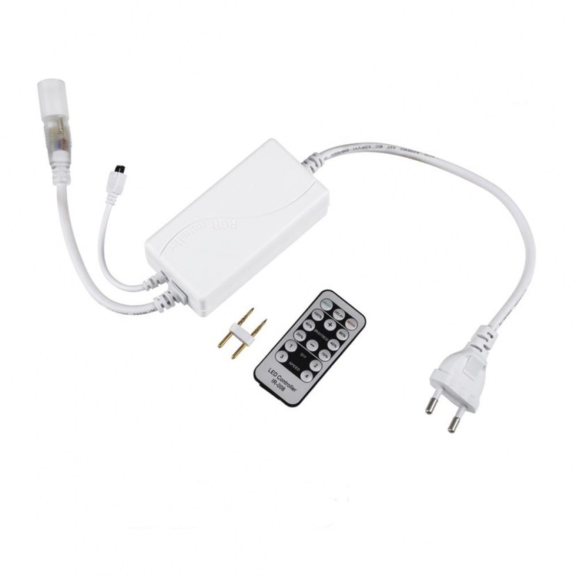 Το Dimmer με Ασύρματο Χειριστήριο 70646 είναι μία εξαιρετική λύση για την άνετη και ακριβή ρύθμιση φωτισμού σε μονόχρωμο Neon Flex LED TUBE 360° Degree. Αυτός ο dimmer υποστηρίζει τροφοδοσία AC/DC 230V και διαθέτει μέγιστη ισχύ 1500W, ενώ είναι συμβατός με τα 2-pin μονόχρωμα συστήματα φωτισμού, προσφέροντας εξαιρετική απόδοση και ευκολία στη χρήση. Με εμβέλεια τηλεχειρισμού έως 10+ μέτρα και τεχνολογία IR (υπέρηχος), επιτρέπει την εύκολη και ακριβή ρύθμιση του φωτισμού χωρίς να απαιτεί καλώδια ή σύνδεση με καλώδια. Η τροφοδοσία τηλεχειρισμού γίνεται μέσω 3 μπαταριών AAA (δεν περιλαμβάνονται). Το dimmer διαθέτει κοινή κάθοδο σύνδεσης και έξοδο 1 V- / V+ (DC 230V 1500 Watt), για αξιόπιστη λειτουργία και υψηλή ποιότητα φωτισμού. Ιδανικό για χρήση σε εσωτερικούς χώρους με Neon Flex LED φωτιστικά, το 70646 εξασφαλίζει άνετο χειρισμό και αξιόπιστη απόδοση φωτισμού για οποιαδήποτε ανάγκη ρύθμισης φωτεινότητας.