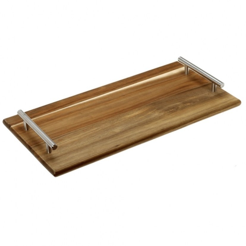 Ο Δίσκος Με Λαβές 01.00.096 μπορεί να χρησιμοποιηθεί για το σερβίρισμα τυριών, αλλαντικών, φρούτων και διάφορων άλλων τροφίμων. Διαθέτει καλαίσθητο σχεδιασμό και ποιοτική σύνθεση από ξύλο. Χρησιμοποιήστε το για να συνοδέψετε το κρασί σας ή για να απολαύσετε μία χαλαρή βραδιά με φίλους.