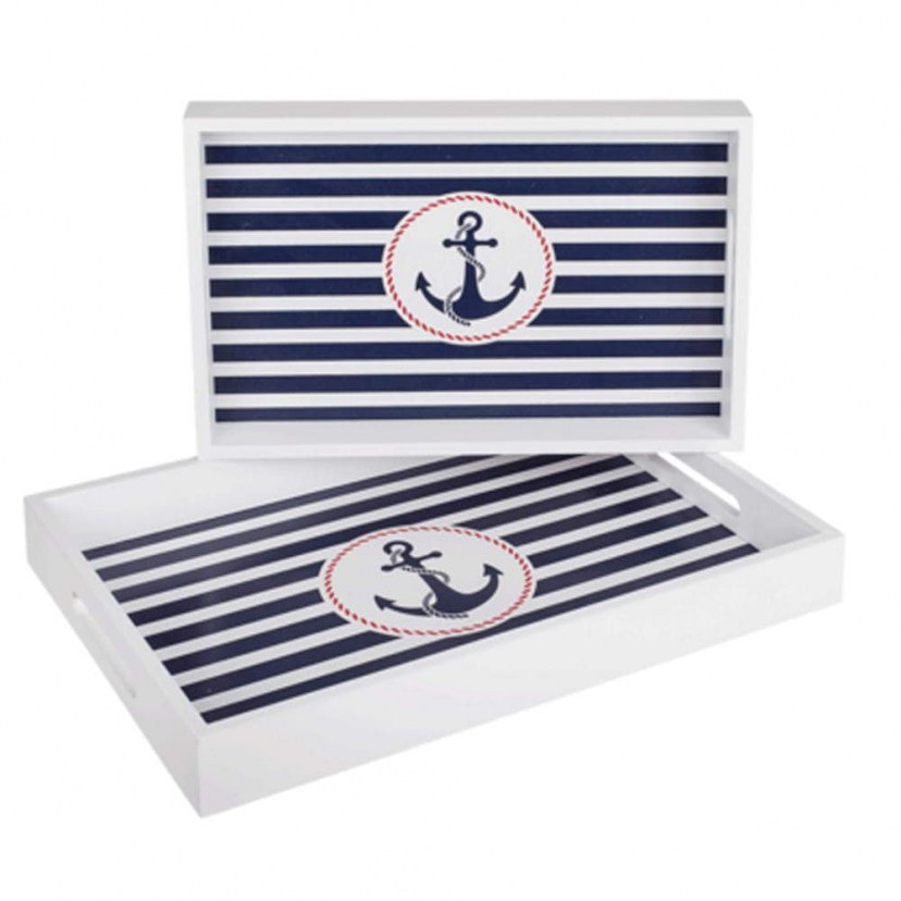 Το Σετ Δίσκοι Με Λαβές Άγκυρα (2Τμχ) 830438 είναι ιδανικό για εσάς που θέλετε να προσθέσετε παραδοσιακά στοιχεία στο design του χώρου σας. Διαθέτει ριγέ μοτίβο και μία άγκυρα για κεντρικό σχέδιο. Κατασκευάζεται από ξύλο και μπορεί να χρησιμοποιηθεί τόσο σαν διακοσμητικό όσο και για το σερβίρισμα φαγητών και ποτών. Το σετ περιλαμβάνει δύο τεμάχια διαφορετικών διαστάσεων.