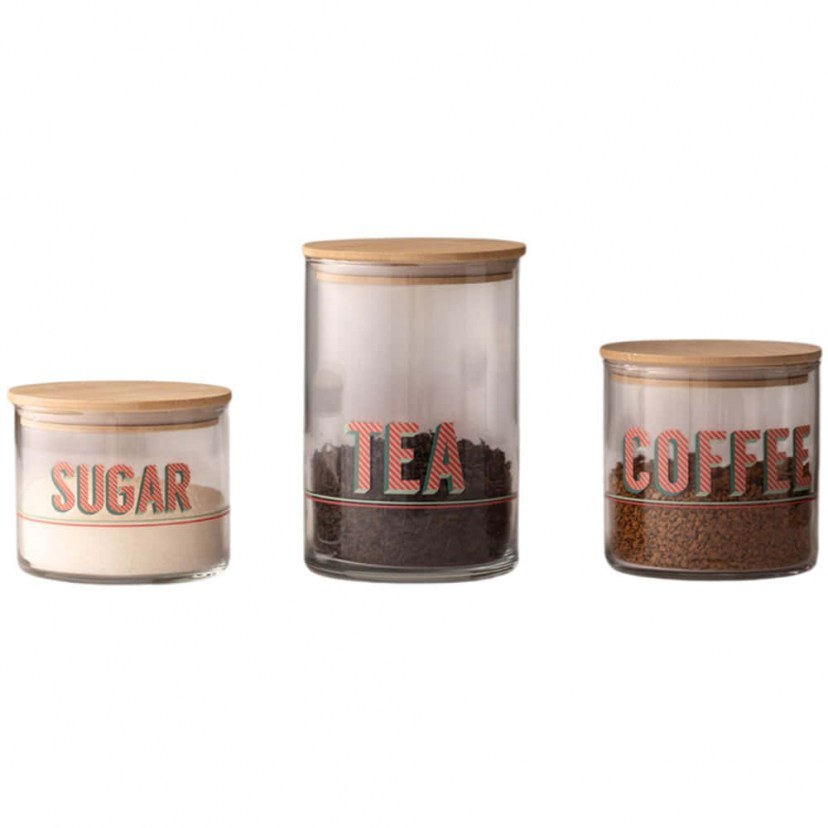 Το Σετ Δοχεία Καφέ/Ζάχαρης/Τσαγιού Retro (3Τμχ) 127RKL1406 οργανώνει την κουζίνα σας με μια γοητευτική vintage αισθητική, καθώς το διαυγές γυαλί του επιτρέπει την άμεση αναγνώριση του περιεχομένου ενώ αναβαθμίζει τη διακόσμηση του πάγκου σας. Η διαβαθμισμένη σύνθεση περιλαμβάνει τρία δοχεία με χωρητικότητα 535ml, 600ml και 1050ml, προσφέροντας την ιδανική ευελιξία για την αποθήκευση υλικών διαφορετικού όγκου με απόλυτη τάξη και στυλ. Για τη βέλτιστη διατήρηση της λάμψης και της ρετρό λεπτομέρειας του υλικού στον χρόνο, συνιστάται πλύσιμο στο χέρι.