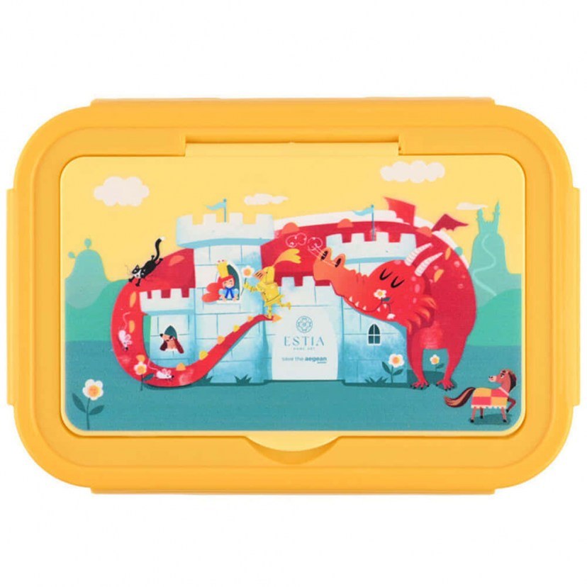 Το Παιδικό Δοχείο Φαγητού Με Κουταλοπίρουνα & Μαχαίρι Save The Aegean Fortress Dragon 01-33620 φέρει πανέμορφη παράσταση βγαλμένη από παραμύθι, γεγονός που θα εντυπωσιάσει κάθε παιδί και θα κάνει το γεύμα μια μαγική περιπέτεια. Με 3 αποσπώμενες θήκες για εύκολο διαχωρισμό φαγητού και σνακ, συνοδεύεται από κουτάλι, πιρούνι και παιδικό μαχαίρι. Είναι κατάλληλο για φούρνο μικροκυμάτων, ψυγείο και καταψύκτη, ενώ μπορεί να πλυθεί στο πλυντήριο πιάτων (χωρίς το καπάκι). Κατασκευασμένο από υψηλής ποιότητας υλικό χωρίς BPA, με ζωηρά χρώματα και πρακτικό σχεδιασμό, αποτελεί την ιδανική λύση για το κολατσιό ή το μεσημεριανό κάθε μικρού ήρωα. Χωρητικότητα: 1400 ml.