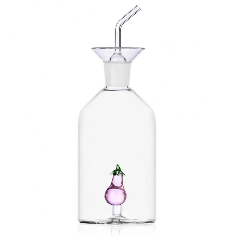 Θέλετε να εντυπωσιάσετε τους επισκέπτες με τις ξεχωριστές επιλογές των ειδών σερβιρίσματός σας; Τότε κάντε δικό σας το Δοχείο Λαδιού Vegetables Μελιτζάνα 354.139. Η μοναδική λεπτομέρεια της μελιτζάνας στο εσωτερικό του χαρίζει χιούμορ και χαρακτήρα. Κατασκευάζεται από χειροποίητο μποροσιλικό γυαλί με τεχνική lampworking. Η ανθεκτική κατασκευή το καθιστά ασφαλές για πλύσιμο στο πλυντήριο σε χαμηλές θερμοκρασίες. Χωρητικότητα: 350 ml.