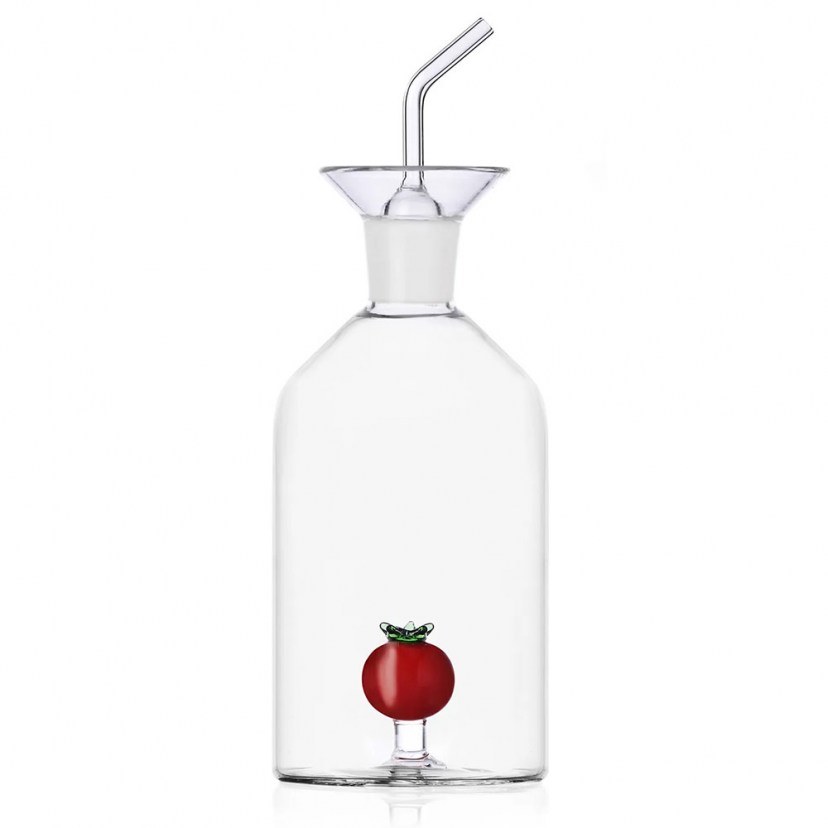 Το Δοχείο Λαδιού Vegetables Ντομάτα 354.140 είναι μία εξαιρετική επιλογή για εσάς που έχετε βαρεθεί τα ίδια και τα ίδια! Η μοναδική λεπτομέρεια της ντομάτας στο εσωτερικό του χαρίζει χιούμορ και χαρακτήρα. Κατασκευάζεται από χειροποίητο μποροσιλικό γυαλί με τεχνική lampworking. Η ανθεκτική κατασκευή το καθιστά ασφαλές για πλύσιμο στο πλυντήριο σε χαμηλές θερμοκρασίες. Χωρητικότητα: 350 ml.