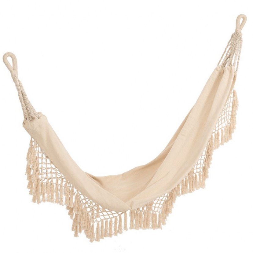 Ζήστε την απόλυτη εμπειρία χαλάρωσης με την Υφασμάτινη Μακραμέ Αιώρα 85912. Με ανθεκτικό υφασμάτινο σώμα και εντυπωσιακές χειροποίητες λεπτομέρειες μακραμέ στα άκρα, προσφέρει στυλ και άνεση στον χώρο σας. Ιδανική για χρήση σε βεράντες, αυλές, ακόμα και σε εσωτερικούς χώρους, προσθέτοντας μια boho chic πινελιά στο περιβάλλον σας.