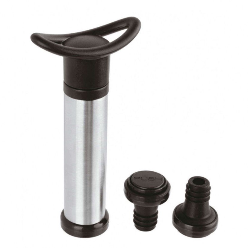 The Wine Air Pump 41500-00 is a useful accessory for wine lovers. Made of stainless steel, it is durable and long-lasting. It is designed to remove air from an open wine bottle. The air trapped in the wine bottle can affect the taste of the wine, and this pump helps preserve its freshness and quality. It is dishwasher safe, making it extremely easy to maintain. It comes with 2 specially designed plastic caps that can be used to seal the wine bottle after using the pump, thus preserving the freshness of the wine. This wine air pump is ideal for enjoying your wine in the best possible way, preserving its taste and aroma. Quality: Stainless Steel & Plastic Dimensions: 1 Pump: Height: 17 cm