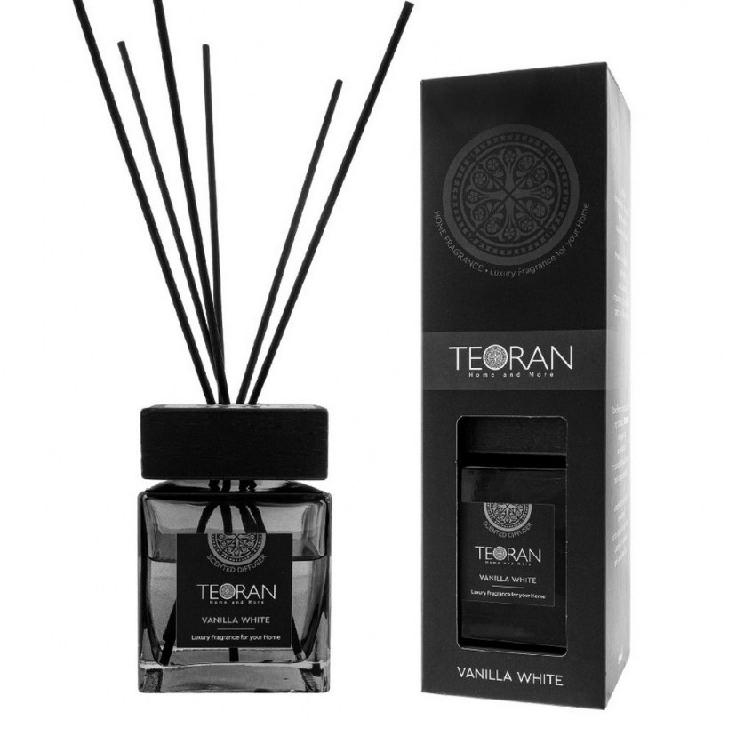 The Vanilla White Square Room Scent With Sticks will contribute the most to making your space more pleasant and fragrant. The vanilla scent is always a safe choice, one that everyone likes. It includes six rattan sticks that diffuse fragrance into the room for 6 to 8 weeks. You can turn them on the other side for an even more intense aromatic effect. • Keep away from fire and flammable materials. • Keep away from children and pets. • Do not swallow. Avoid contact with eyes.