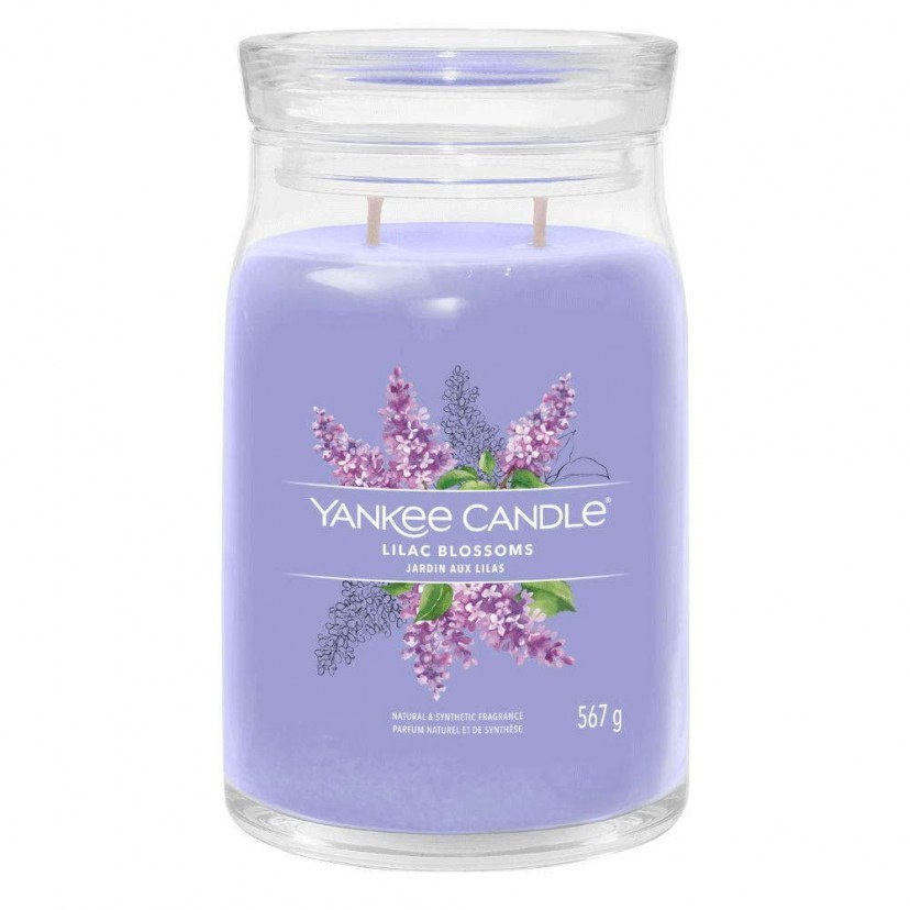The Signature Lilac Blossoms Large Scented Candle 1629963E offers an intoxicating combination of fragrant lavender and blooming lilac. This candle creates an atmosphere full of the fresh scent of these flowers, offering a sense of well-being and relaxation. The candle comes in a glass container with a lid, which protects the candle and keeps its scent fresh. It is made from soy wax, which is 100% plant-based and biodegradable, making it environmentally friendly. The candle has two wicks, which allow for even burning and release a rich aroma. Enjoy the atmosphere of lavenders and lilacs with this scented candle.