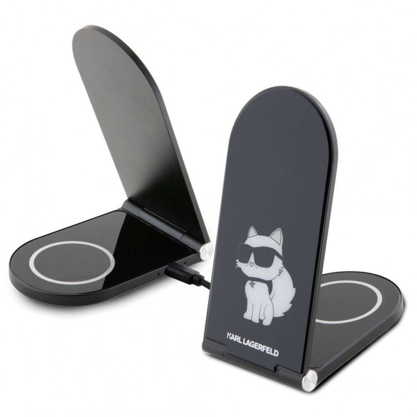 The KLDCRFALCHNK Qi 15W Smart Dual Choupette Wireless Charger features a playful design featuring Karl Lagerfeld's cute Choupette kitty. This charger not only provides power to your device, but becomes an integral part of your lifestyle. Thanks to the foldable design of the MagSafe charger, you can easily place it in your pocket or bag, ready for use at any time. When unfolded into the base, the charger also allows wireless charging of the headphone case, ensuring your devices are always ready for action. Features: