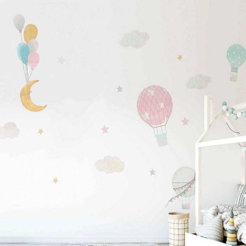 Decorate the children's room by choosing the Vinyl Wall Stickers Sky 18312 Ango, which feature a beautiful theme of hot air balloons and balloons, and soft colors that will create a warm atmosphere! They are easy to install and safe to remove, as they do not cause damage. Their construction does not contain toxic substances and can be cleaned without fear. Quality: Vinyl. Dimensions: Package dimensions: 47.5x2x70 cm. Dimensions of the surface covered by the stickers when unfolded: 1.90x1 cm.