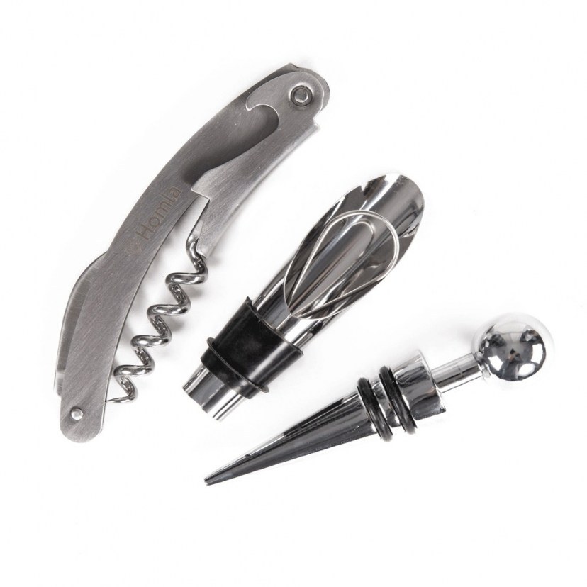 The practical Mooka Wine Accessory Set is the ideal addition to any moment of celebration with family or friends. Regardless of your experience in the world of wine, this set is not only an accessory, but also the starting point for a unique journey of taste and delightful exploration. A wine cork is included which delays the oxidation of the wine, preserving its freshness and taste for longer. Also included is a pourer that allows easy pouring of the wine and prevents dripping, offering a smooth and seamless experience with every sip.Finally, a corkscrew is included for easy opening of wine bottles. They are made of durable steel, i.e. a material that ensures the quality and durability of the accessories.