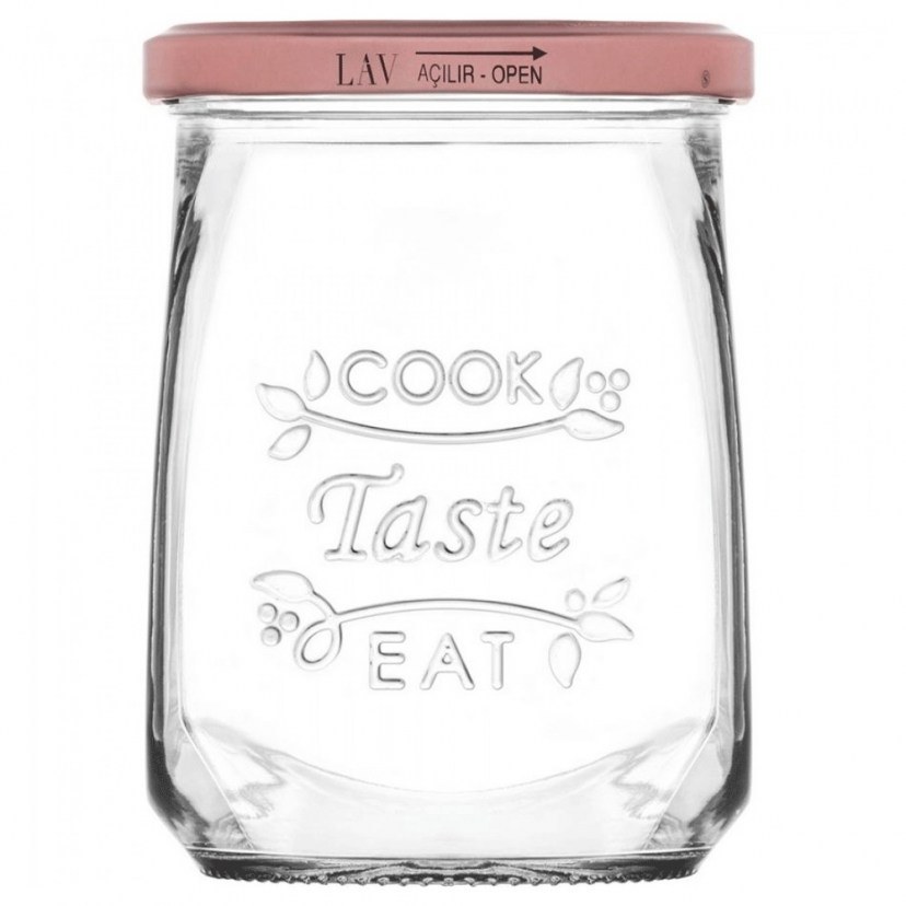 The Tasty LVTAS05555Z Storage Jar is ideal for those of you who love organization and want to keep your kitchen in order. It has beautiful designs and inscriptions. It is made of glass and has a metal lid. It is suitable for food contact. Capacity: 550 ml.