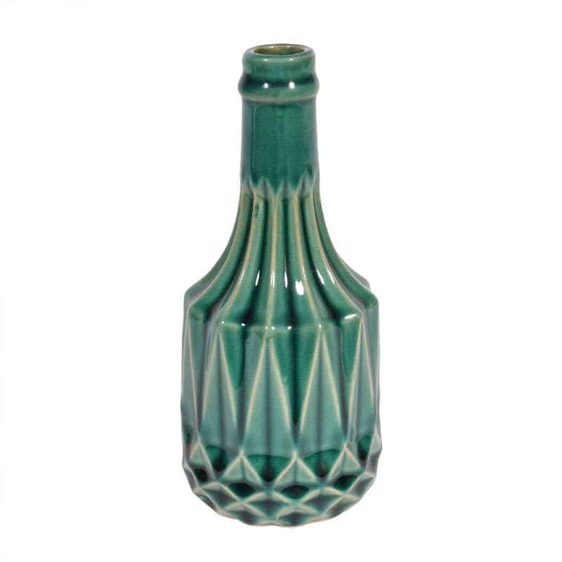 The intricate base with embossed designs contrasts harmoniously with the thin, simple neck, creating a stunning aesthetic result! Thanks to its unique color and meticulous design, Vase 1-0033-91-015 is an accessory that must be placed in a prominent position in your space! Quality: Ceramic. Dimensions: 1 Vase: Diameter: 9 cm, Height: 19 cm.