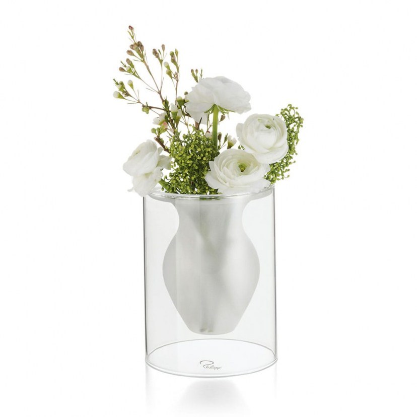 At first glance, one thing is clear about the Esmeralda Vase 149002: the amazing design. This unique highly designed object allows the vase to appear as if it is floating in a glass container. The striking effect is intensified through the contrast of clear and satin glass. A unique highlight accessory for every flower. It is made of handmade blown glass, for an even more refined and elegant look!