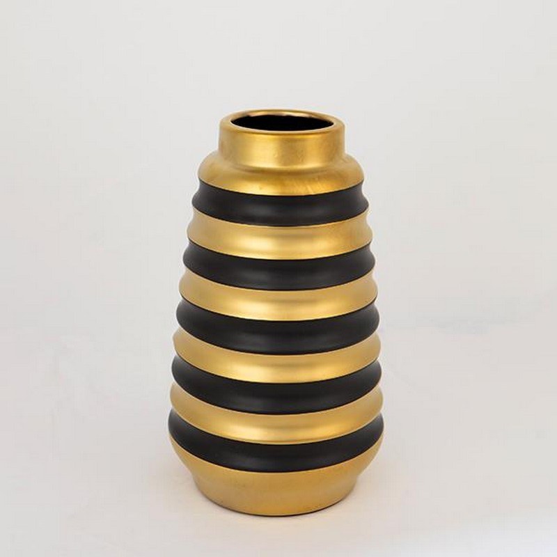 Discover the elegance of Vase 752-20068, which combines unique design and modern aesthetics. Made of high quality ceramic material, this vase features a striking embossed striped design in a gorgeous color scheme. Its elegant striped pattern and careful construction give the vase a sense of luxury and sophistication, making it ideal for adding a modern and sophisticated touch to any space. Quality: