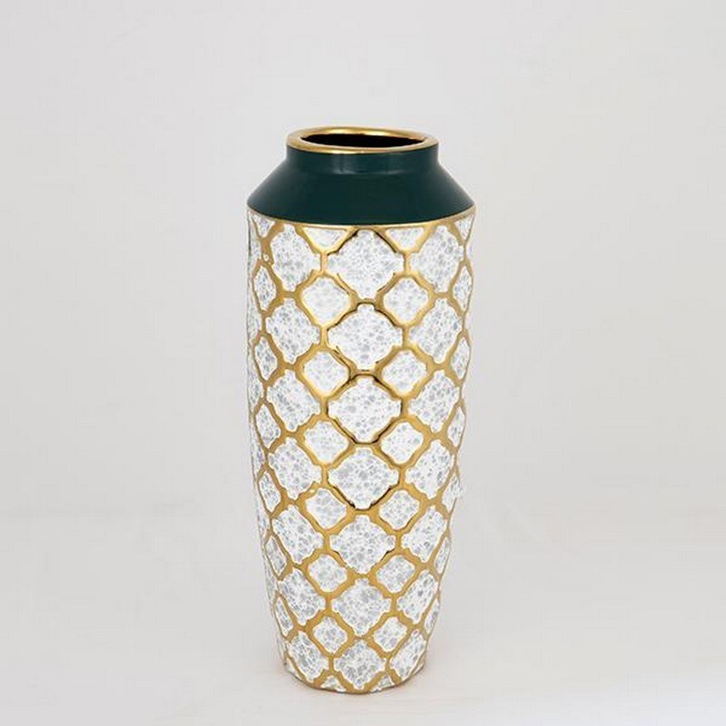 Discover Vase 752-20072, a real decorative jewel for your space. Made of high-quality ceramic material, this vase impresses with its unique color combination and elaborate geometric design. With its detailed construction and exquisite finesse, the gorgeous vase adds a sophisticated feel to any room. Whether you use it as a centerpiece or a great accessory for your space, this vase brings out the elegance and uniqueness of your decor. Quality: