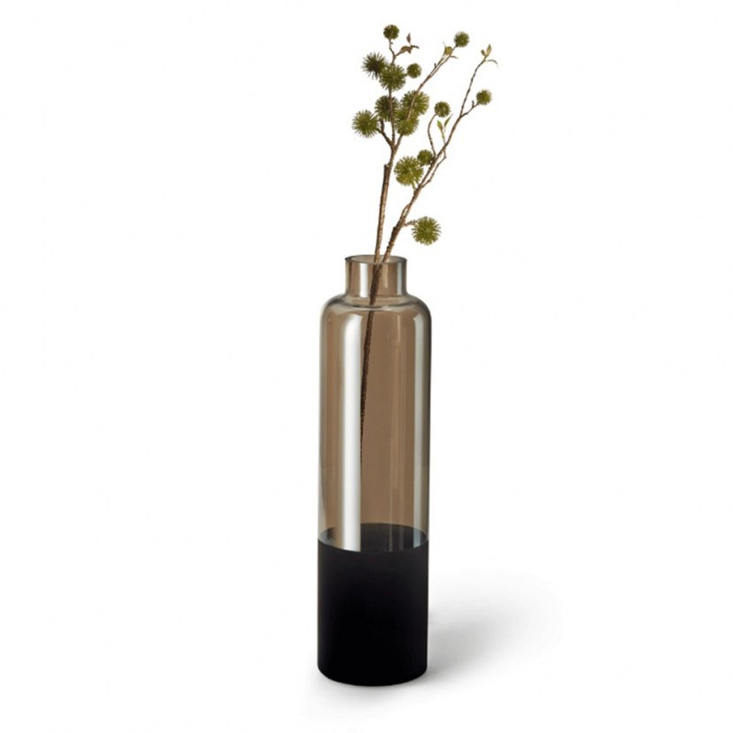 The Linus L 230003 Vase stands out for its elegant appearance and the unique combination of gray-brown tinted glass with a subtle mirror effect. The black matte coating on the base offers a special sense of elegance and stability. Ideal for long-stemmed flowers, the gorgeous accessory is the perfect vase to showcase stunning flower arrangements, while offering a modern feel to your space. The solid glass base and light mirror effect provide a sense of depth and luxury, making it ideal for any contemporary decor.