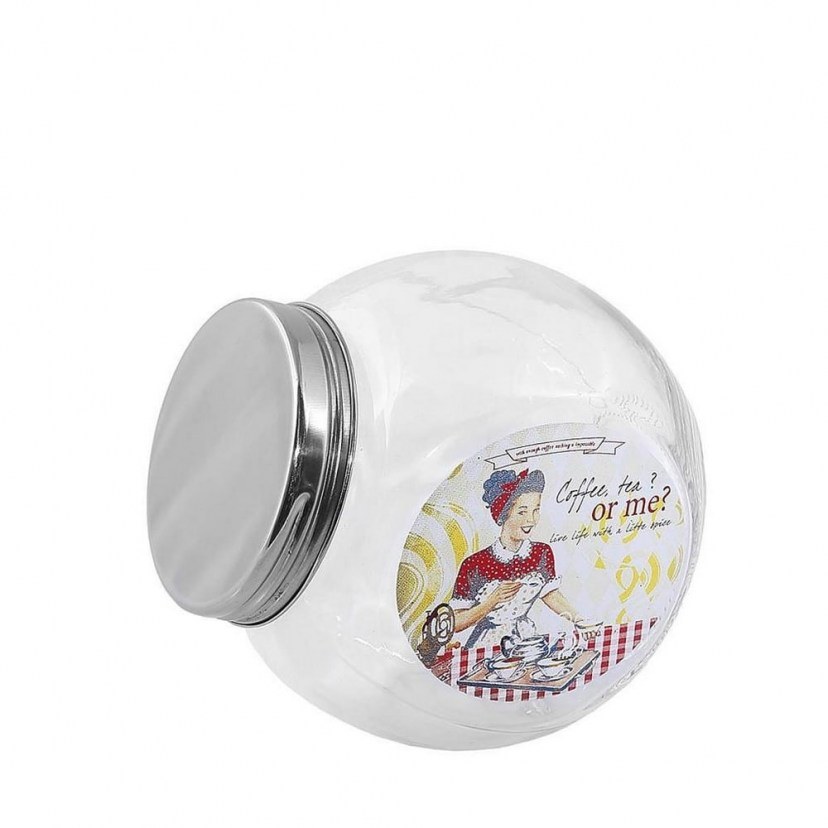 The Int8504 Jar Set is ideal for your kitchen thanks to its elegant and ergonomic design. It consists of two glass jars with a metal lid and a unique design on the side. They are perfect for storing various foods and are inspired by retro style. Quality: Glass & Stainless Steel. Dimensions: 1 Set: 2 Jars: Length: 10 cm, Width: 7.5 cm, Width: 10 cm.