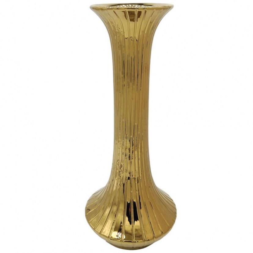 The Riga Vase 15-00-23707 exudes a modern and eccentric aura, as it combines a tall neck with discreet embossed stripes and a glossy finish. This ceramic vase creates an exciting presence that stands out. The tall neck adds a playful eccentricity, while the embossed stripes add texture and movement to the design. The glossy finish reflects light and shine, adding a unique character to the space. This modern vase is ideal for hosting flowers, branches, or decorative plants, enhancing the aesthetics of your space. Add a special style to your decor with this unique and modern vase. Quality: Ceramic Dimensions: 1 Vase: Diameter: 17.5 cm, Height: 41.5 cm