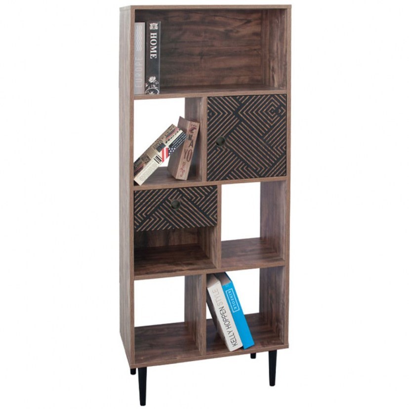 The Home Library Thanks to its modern design is an excellent choice to refresh your space. It has multiple storage spaces to organize your books and expose your favorite decorations. It is made of melamine and rests on four metal legs. The product is delivered unseen with assembly instructions.