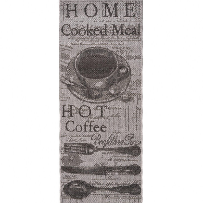 Make your kitchen more beautiful and comfortable with the Natura 34521 032 Kitchen Mat. It has stylish designs with inscriptions, a cup of coffee and cutlery. Made from 100% berclon advanced yarn, with a flatweave pile, it offers excellent durability and a modern aesthetic.