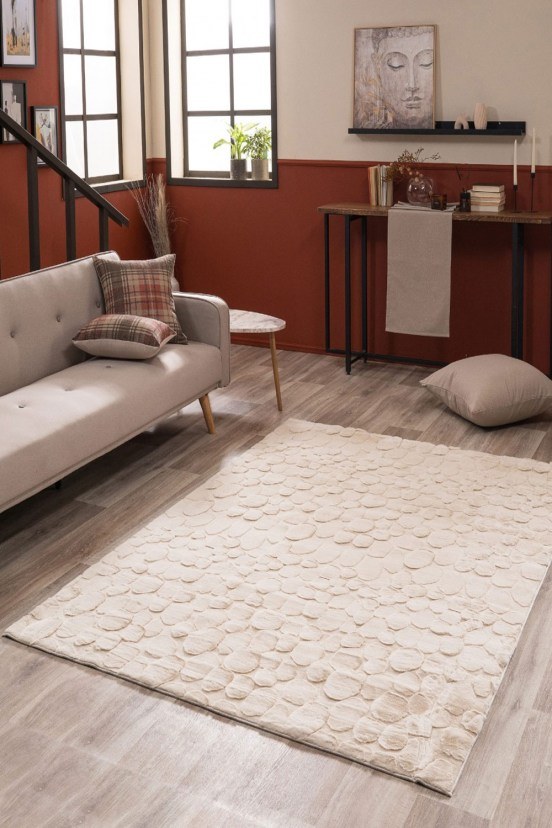 Το Χαλί Alley αποτελεί την ιδανική επιλογή για να προσθέσετε ζεστασιά και κομψότητα στον χώρο σας. Κατασκευασμένο από 100% polycotton, προσφέρει μοναδική απαλή υφή γούνας, που μιμείται με ακρίβεια τη γούνα του κουνελιού. Το βοτσαλωτό σχέδιο και οι παστέλ αποχρώσεις αναβαθμίζουν αισθητικά κάθε δωμάτιο, ενώ η αντιολισθητική επιφάνεια εξασφαλίζει σταθερή τοποθέτηση. Ελαφρύ και εύκολο στη χρήση, μπορεί να τοποθετηθεί σε όλους τους χώρους του σπιτιού, προσφέροντας ταυτόχρονα ζεστασιά, άνεση και στυλ.