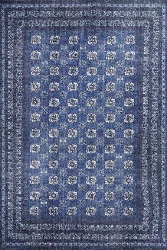 Upgrade your space with the Blues AL Rug, which features a unique vintage design with strong oriental influences. The unique shades and elaborate patterns bring a sense of luxury and sophisticated style to your space, inspired by traditional, oriental techniques. Made of polyester, this rug is not only visually stunning, but also incredibly soft to the touch. The plush 4mm pile height adds a touch of elegance to any space, making it an ideal choice for your living room, bedroom or office. The recycled polycotton bottom provides extra durability while contributing to a more sustainable future. Machine washable with delicate wash programs at 30 °C. Avoid using a brush or harsh chemicals such as oil thinners, fabric softeners or high-dose bleach as they may damage the product.