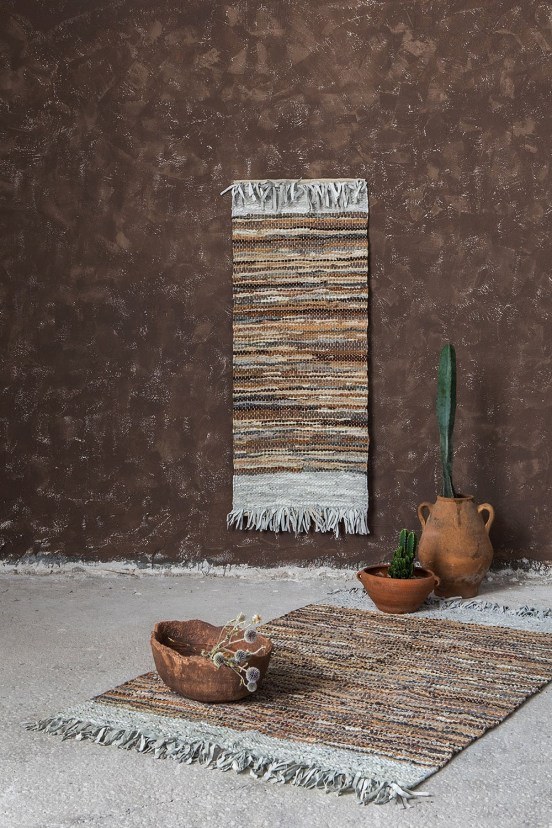 The carpet edin is inspired by traditional rugs, adorning the scenes of the nomadic tribes of the desert! It is made of leather to create a unique carpet, with a special knit, interesting texture and durability and use. A carpet that will magnetize the look, both with the design and the modern shades! quality: 100% skin