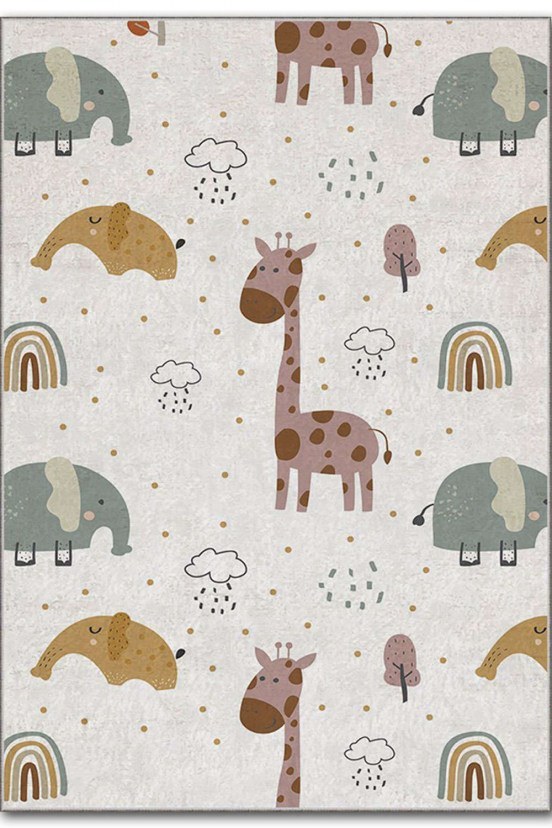Meet the HMI KDC-106 Rug, the ideal choice to add a playful touch to your space! Featuring cute animals and rainbows, the rug's design offers vibrancy and imagination, making it ideal for children's rooms or spaces that need a happy atmosphere. Made from 100% polyester, our rug combines a plush texture with exceptional durability. With a weight of 740 g/m², it withstands the wear and tear of everyday use, offering long-lasting performance. The stunning digital print on velvet fabric highlights the vibrant colors and intricate designs, adding elegance to your space. For safety, the rug has a non-slip bottom with felt dots to keep it stable, while the laminated sponge adds comfort. It is antibacterial and can be easily washed in the washing machine at 30°C, making maintenance simple and quick.