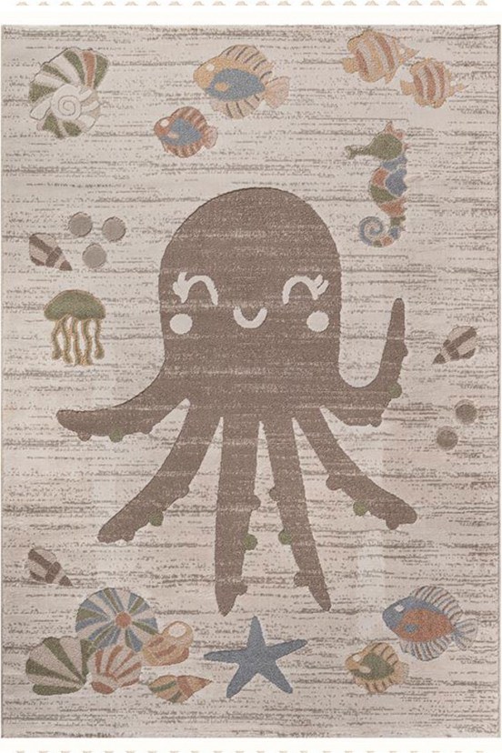 Κάντε δικό σας το Χαλί Lorena 5780 και να είστε σίγουροι πως θα μεταμορφώσει το παιδικό δωμάτιο σε ένα ευχάριστο και παιχνιδιάρικο περιβάλλον. Φέρει όμορφα ανάγλυφα σχέδια κοχύλια, ψάρια και ένα μεγάλο χταπόδι. Κατασκευασμένο από 40% polyester και 60% polypropylene, συνδυάζει ανθεκτικότητα και απαλότητα. Με ύψος πέλους 10mm, πυκνότητα 224.000 κόμπους/m² και συνολικό βάρος 1850gr/m², προσφέρει άνεση στο παιχνίδι και στις καθημερινές δραστηριότητες των μικρών μας φίλων.